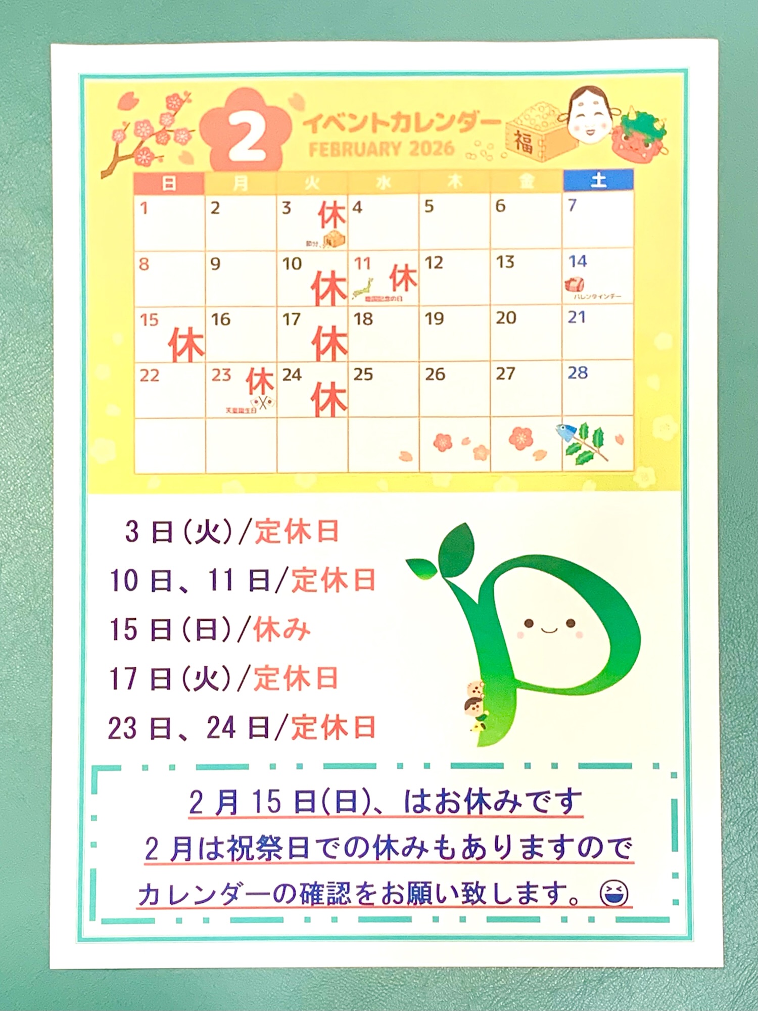 【2月の予定カレンダーです】